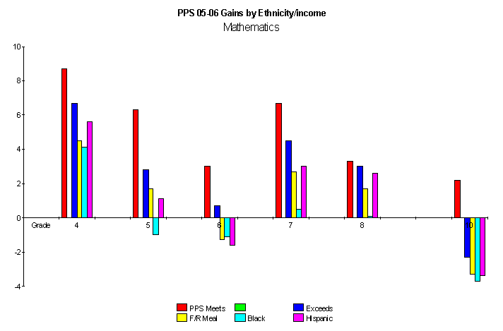 Achievement Gains, Portland Public Schools, 2005-6, by ethnicity, income