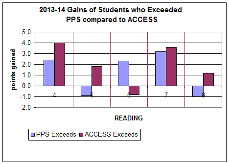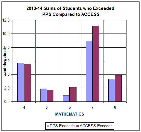 Gains achieved by students who exceeded the previous year: PPS compared to ACCESS