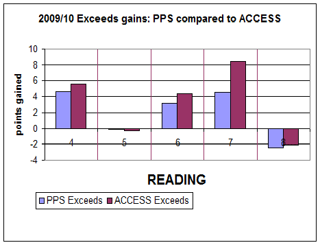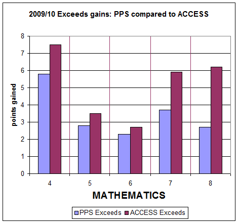 Gains achieved by students who exceeded the previous year: PPS compared to ACCESS